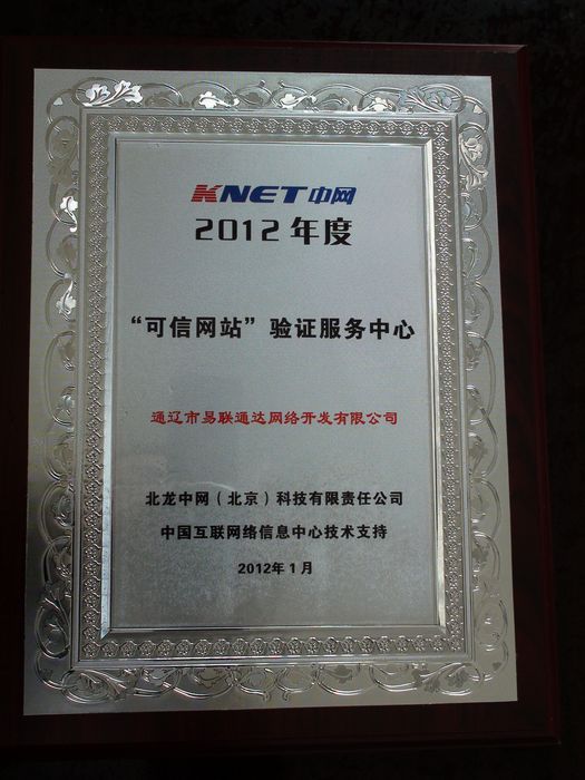 2012年通過中網(wǎng)可信網(wǎng)站認(rèn)證,正式成為通遼地區(qū)唯一一個 可以為通遼地區(qū)企業(yè)的網(wǎng)站提供可信網(wǎng)站驗證服務(wù)的機構(gòu)。